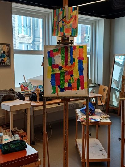 In ons ruime atelier zijn voldoende schildersezels en tafels aanwezig om aan te werken. Lijkt het je wel iets om te schilderen en/of tekenen in groepsverband? Vul dan het contactformulier in om een keer kennis te maken. Onderaan de pagina kan je zien op welke dagdelen en tijden de groepen aanwezig zijn. Tot snel in ons atelier.
